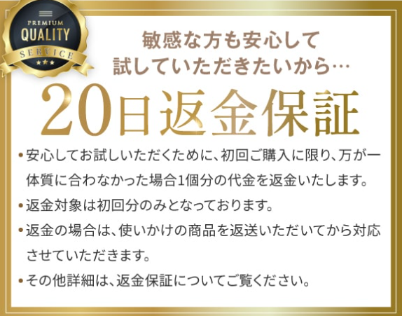 公式サイトでの購入であれば20日の返金保証が付いています。